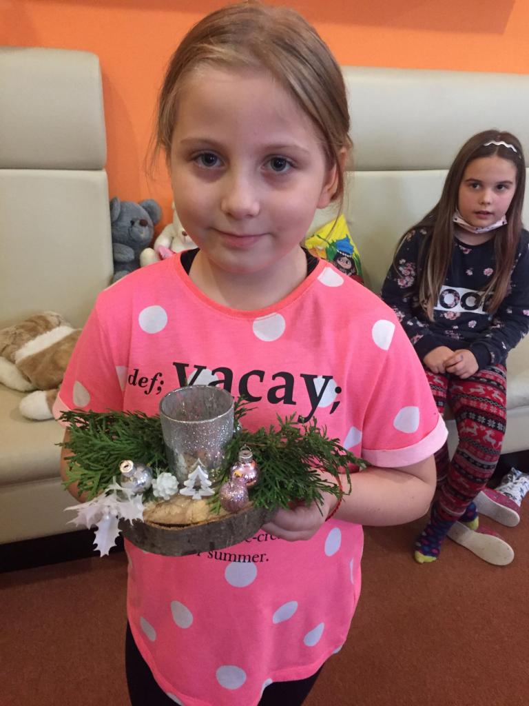 Garantem nám byla ing.Lucie Valouchová. Děti si s paní Lucií povídaly o Vánocích, jak je znají ony, jaké tradice dodržují doma a jaké přání letos mají. Také jsme si povídali o tom, jak vypadaly tradiční české Vánoce našich babiček. Pak jsme se pustili do výroby svícínku, který byl tvořen převážně z přírodnin a děti si dle vlastní fantazie zdobily. Cílem projektu bylo seznámit děti s některými tradicemi, pověrami a zvyky, které se pojí s vánočním obdobím a navodit atmosféru Vánoc. Připomněli jsme si také, že Vánoce jsou nejen obdobím pohádek, dárků a dodržování tradic, ale měli bychom být na sebe navzájem milí a měli bychom myslet i na druhé.